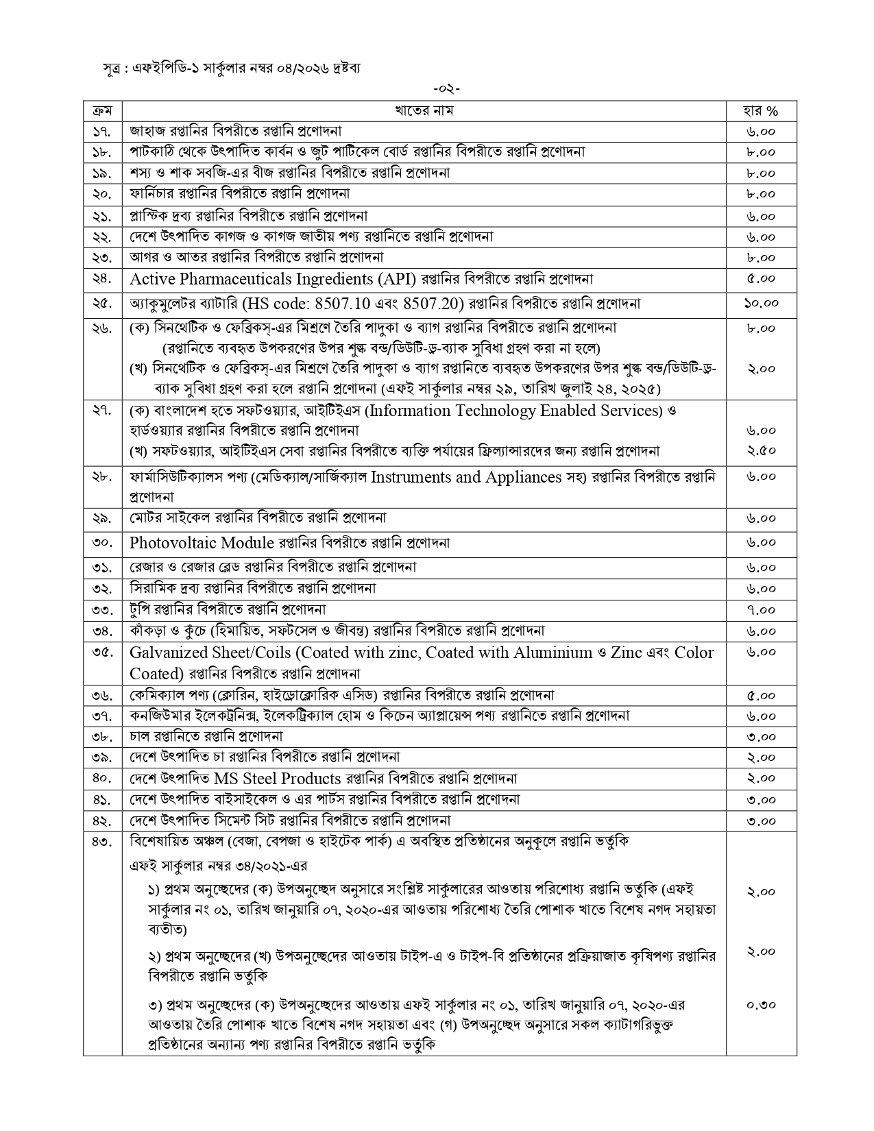 Bangladesh Bank Circular for incentives