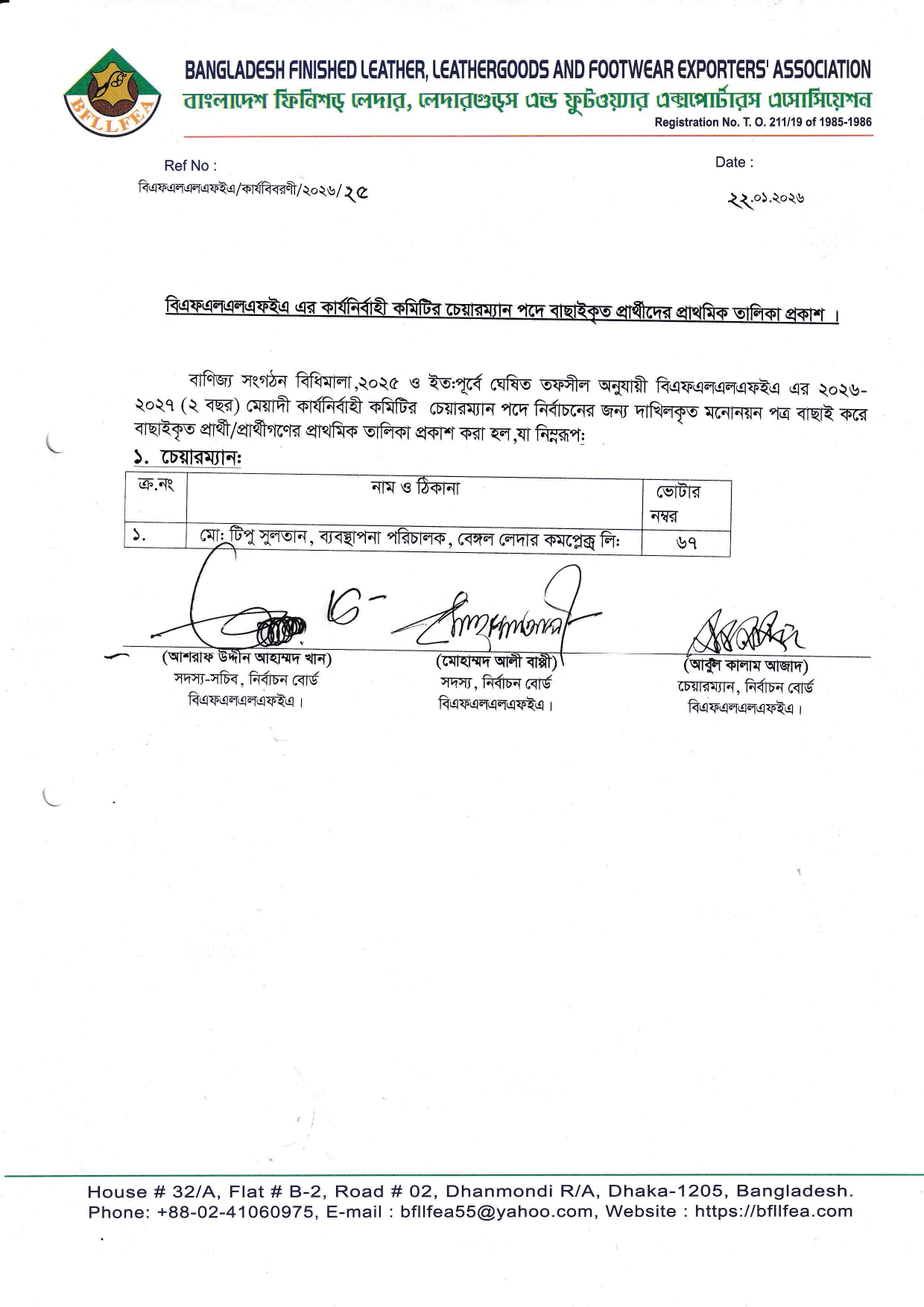 চেয়ারম্যান পদের প্রাথমিক তালিকা