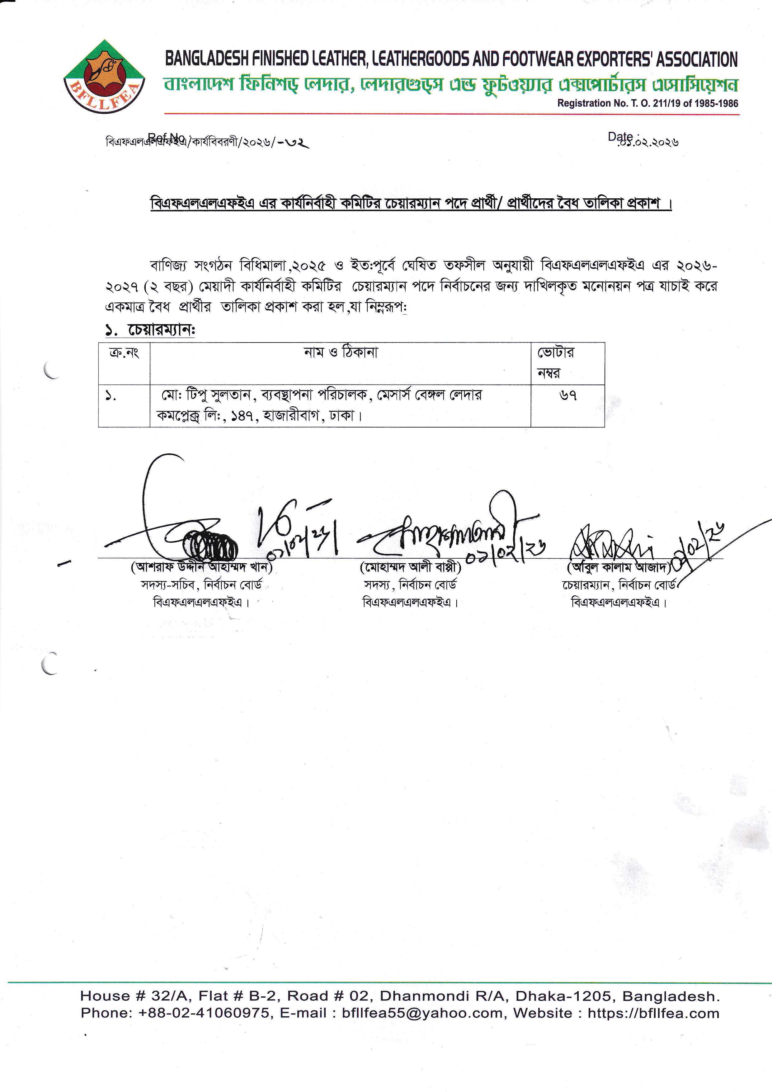 List of Candidate for Chairman Election.