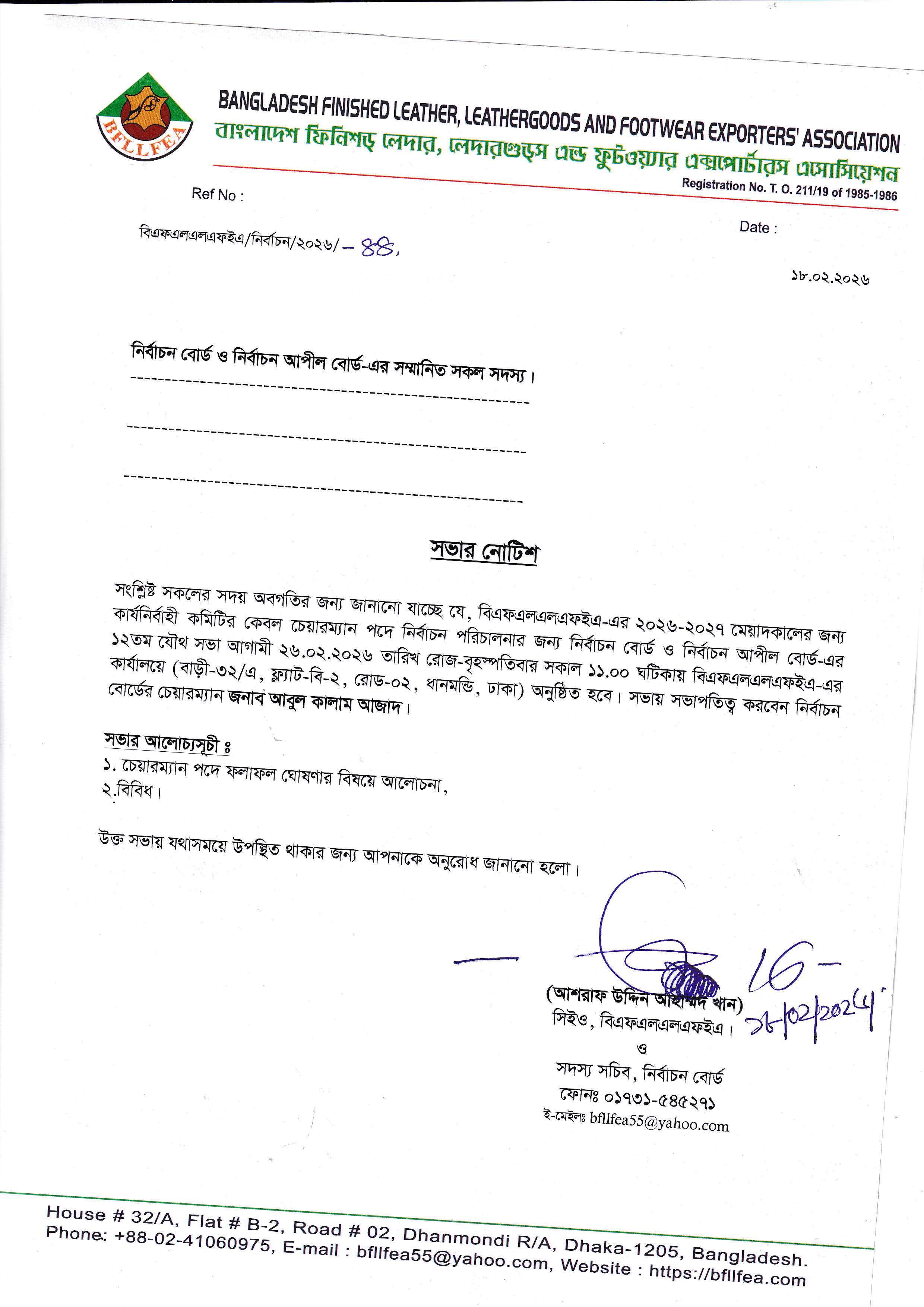 Election Meeting Notice, date 18/02/2026.