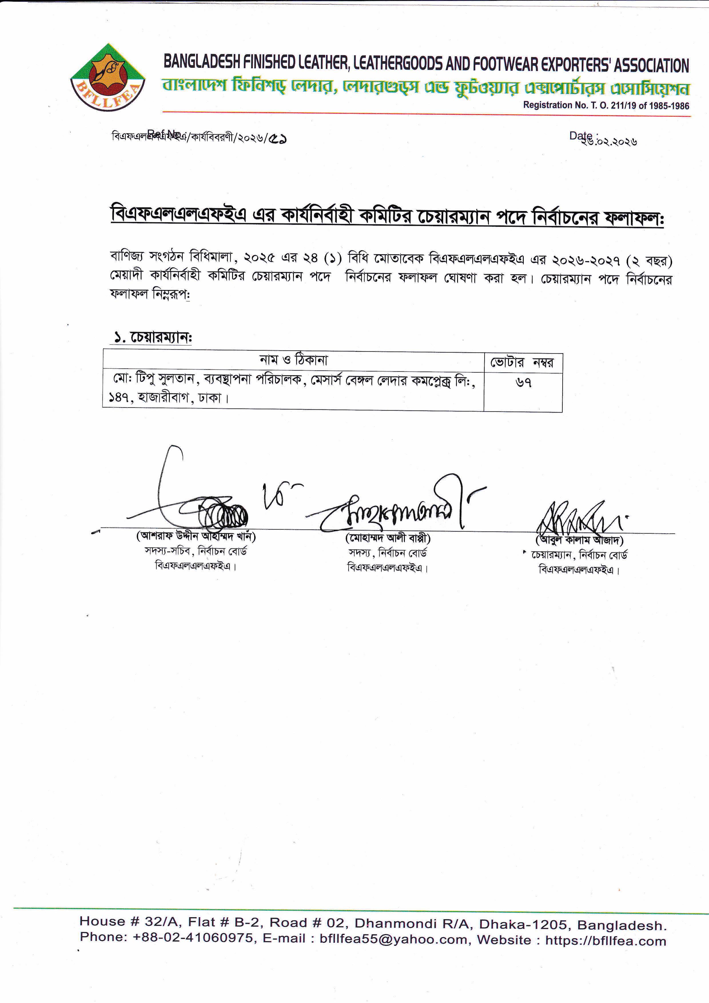Chairman Election Result, 26-02-2026.