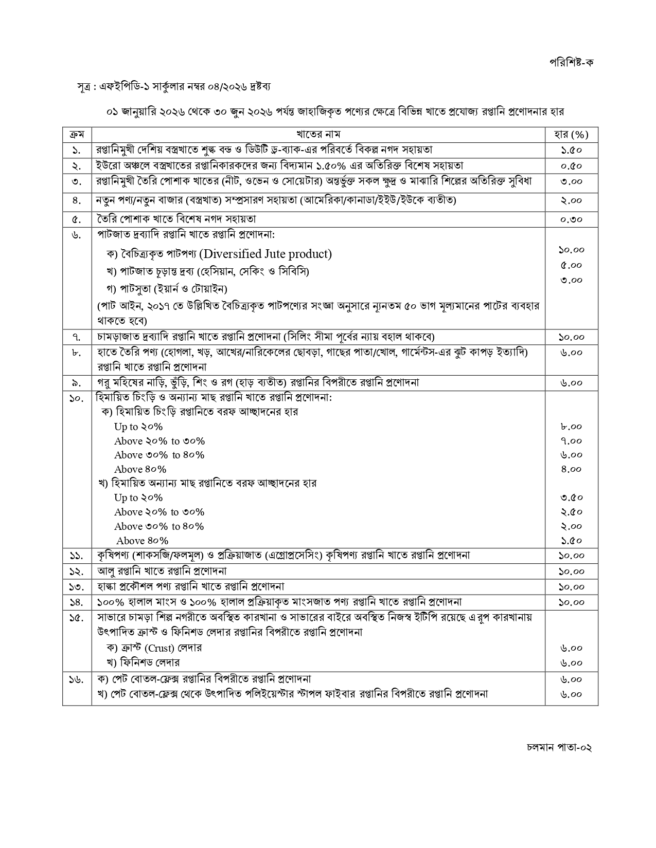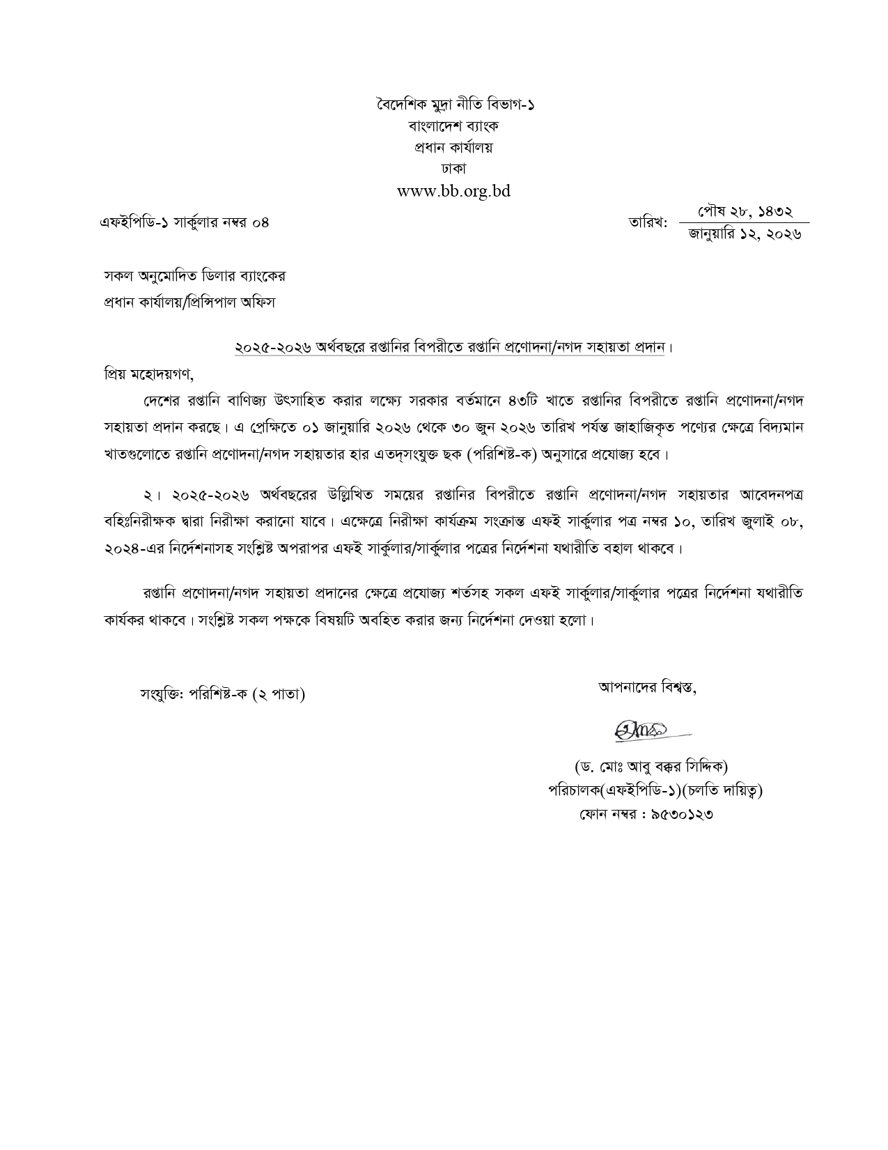 Bangladesh Bank Circular for incentives